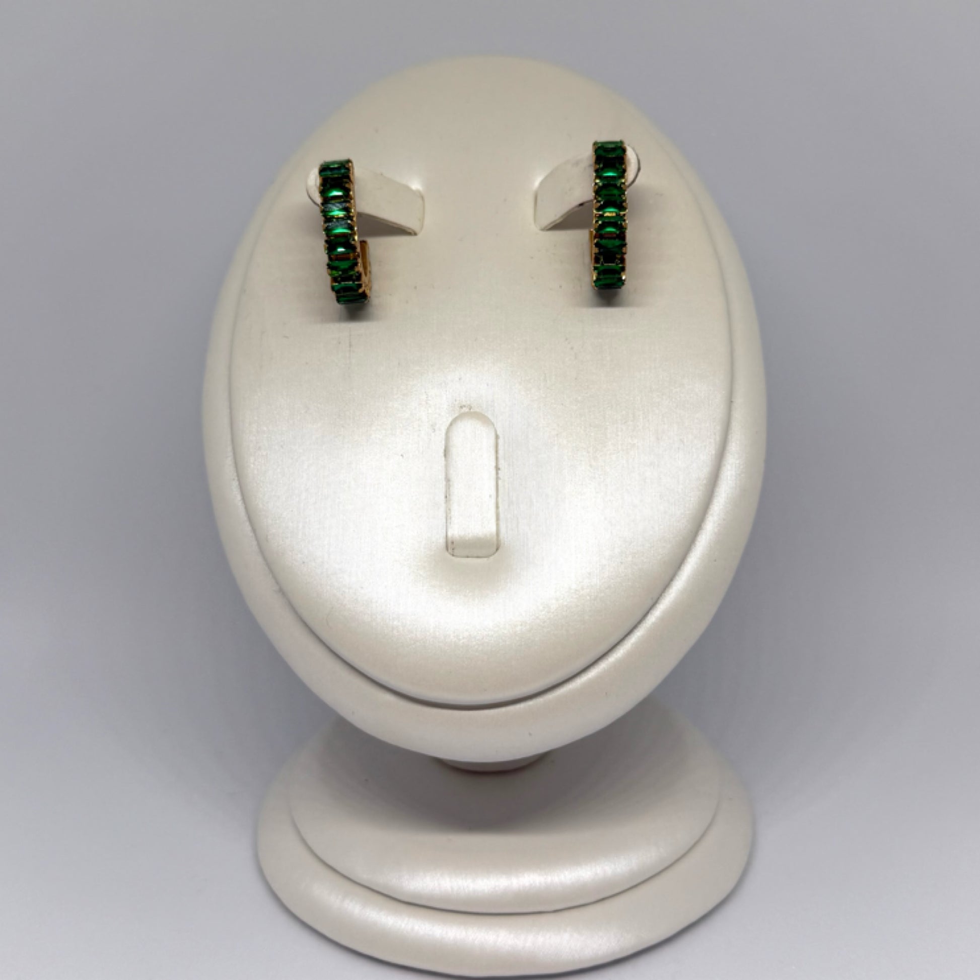 Green baguette stud earrings